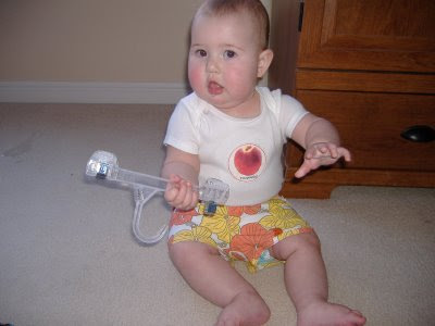 Well, tonight Ella is sleeping in her own bedroom, for the first time ever. And I am a little nervous, but I think it will stick, because we had to take the crib apart to get it out of our bedroom and into hers, and I'd have to be pretty desperate to do that again. She had a little trouble falling asleep in her new room, but she is sleeping soundly now, so I am hopeful! In some ways, I am sure that I am a bad parent, because babies want to be close to their parents and maybe even snuggle with them at night. But we tried that, and she doesn't sleep very well in our bed, and we wake her up every night when she sleeps in our bedroom. (I used to think that she just got hungry every night at ten or ten-thirty, but then I realized, even if we were quiet as little churchmice, she would always be "hungry" right when we went to bed.) So I guess separate rooms are just right for our family-- but I'll let you know how it goes in the future.